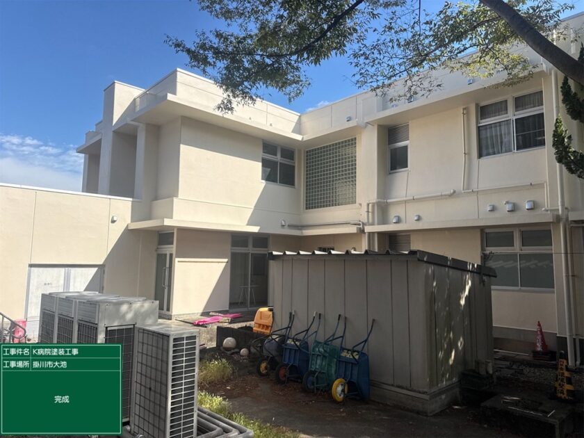 社長ブログ 掛川市K病院様 無事に完成しました。 掛川市K病院様 無事に完成しました。 2025年10月25日 掛川市 遮熱・断熱・キルコ 防水工事 シーリング工事 雨漏り工事 工場・店舗工事 はじめまして 代表の冨髙です。 掛川市 川口会病院様の外部改修工事が無事に完成しました。 事前調査してから施工から完工まで約半年間、工事期間中は 関係者様には、ご迷惑や不便をお掛けいたしました事深くお詫び申し上げます。 長期にわたりご協力頂き誠にありがとうございました。 川口会病院様(医療法人川口会)は静岡県掛川市の神経科、精神科を専門とする病院です。 弊社としても 自慢できる現場が増えました。 誠に有難うございました。 創業35年、累計5,000棟以上の実績! 雨漏り診断無料、屋根カバー工事、屋根塗装工事、外壁塗装工事、防水工事お任せください! 対応可能エリアは、浜松市・磐田市・袋井市・掛川市・菊川市・湖西市・豊橋市等々お気軽にご相談ください。 住民の皆様、オーナー様へ、マンション管理会社様に安心してお任せいただけるよう、きめ細やかな対応を心がけております。ぜひ、アパート・マンションの塗装もお任せください。 アパート・マンション・店舗・工場の施工事例一覧へ 根拠ある的確なお見積りをご提出させて頂きます。 無料相談 無料現地調査依頼 0120-34-6796 受付時間 9:00~18:00(水曜・日曜定休)