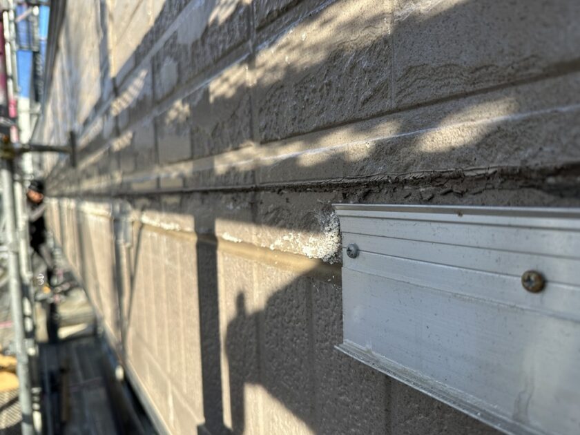 サイディング張替え・シーリング処理完成後、外壁塗装をしてから中間アルミ幕板を復旧取付して上部にシーリング処理予定です。