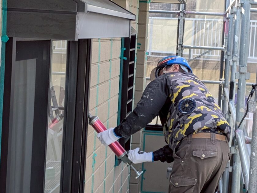 塗装工事前に高圧洗浄工事後、シーリング施工をしていきます。