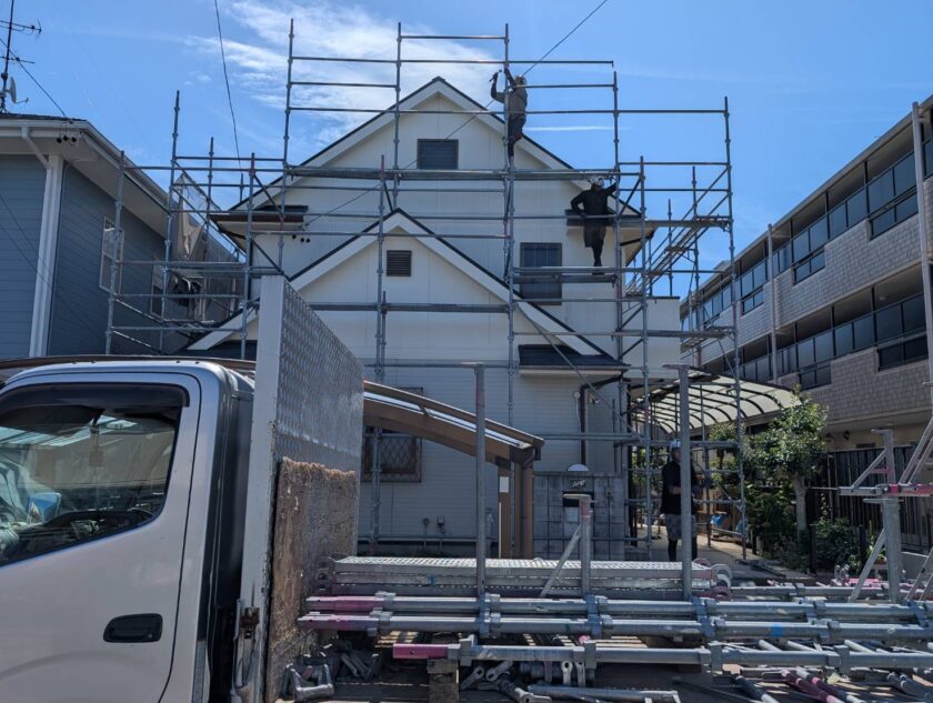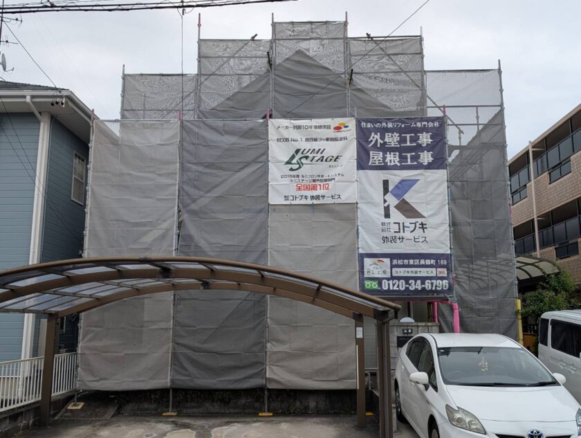湖西市のY様の外壁屋根塗装工事が始まりました。