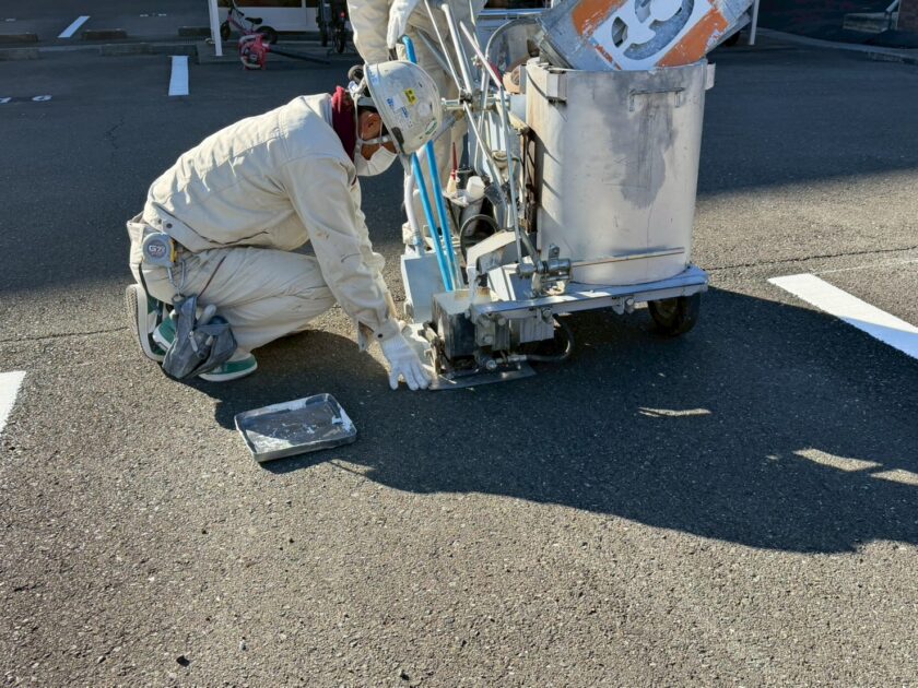 本当は年末に駐車区画線工事を行う予定でしたが、雨天延期となり昨日施工となりました。