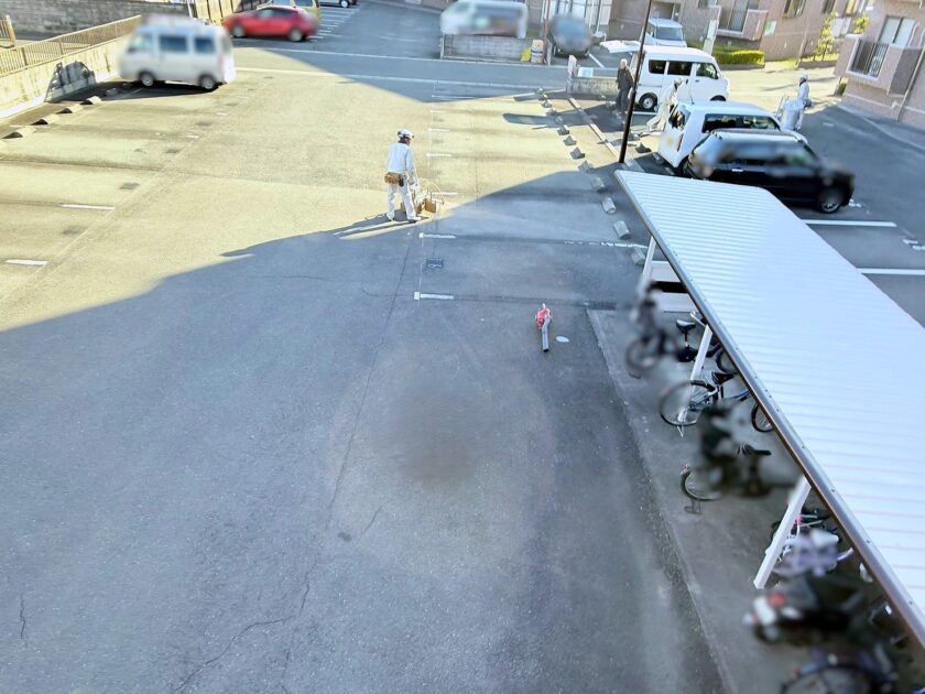 管理会社さんと連携し、当日車の移動が必要なお部屋にお伺いし一時的に移動してもらいながらの施工させていただきました。