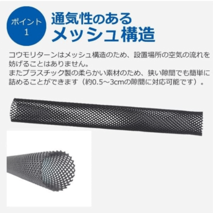 1㎝~3㎝の隙間があれば侵入できてしまうので対策として隙間を埋めるメッシュ構造のアイテムを使用しました。