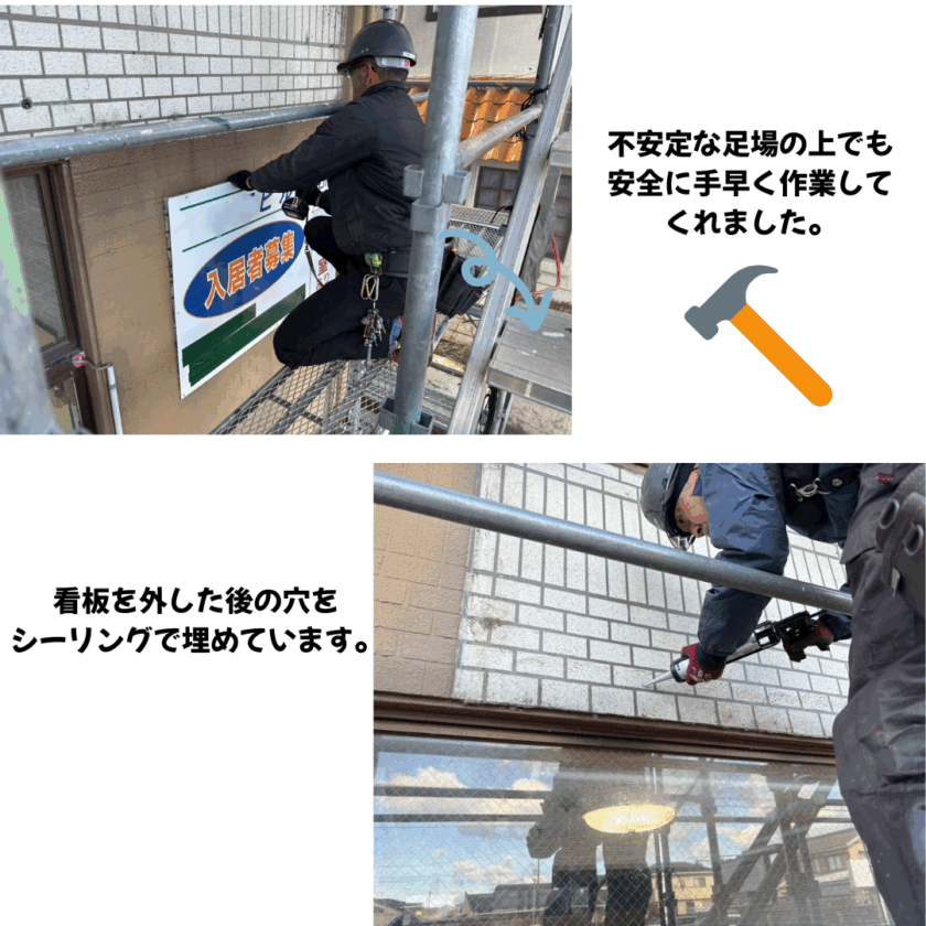 狭い足場内で安全に作業をしてくれました協力業者様ありがとうございました。