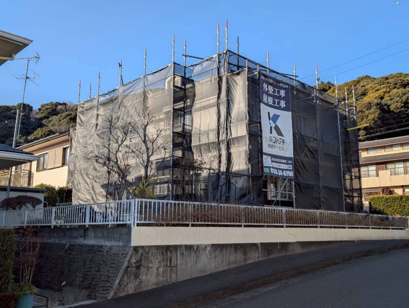 掛川市のS様の外壁屋根塗装工事が始まりました。