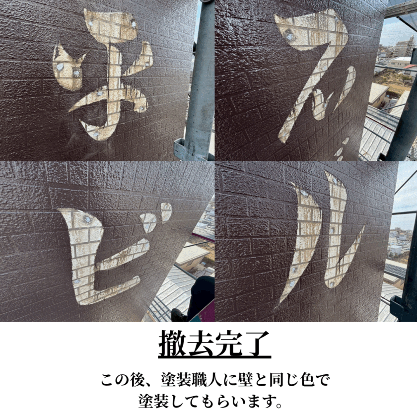 現在工事が進んでいる初生のビルの文字パネルを撤去してきました。