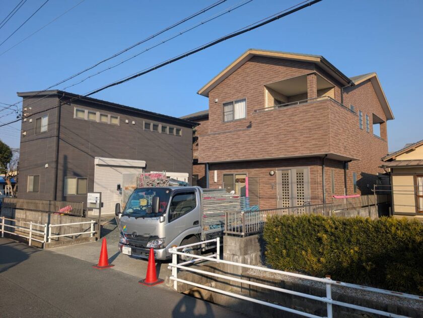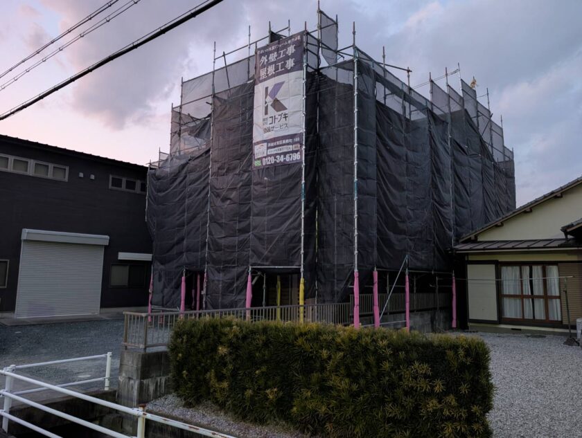 一日弱で足場設置工事が無事完工いたしました。