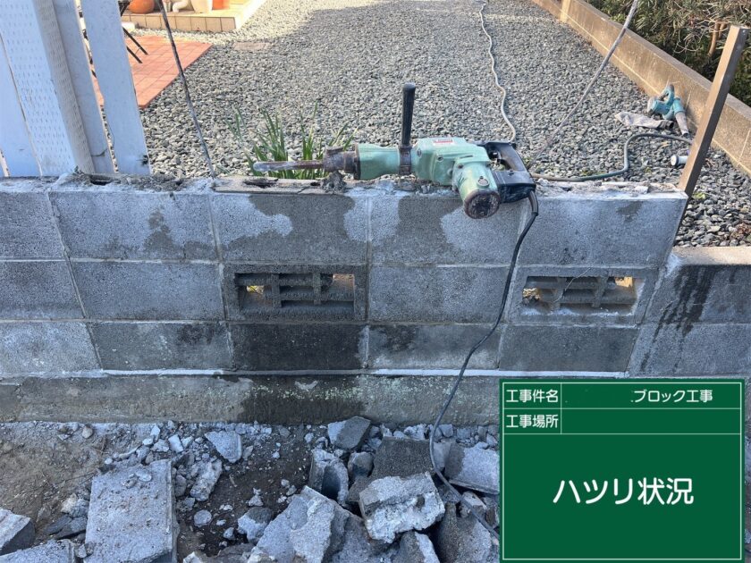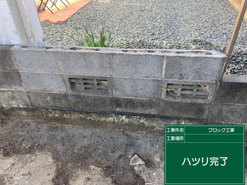 お隣さんが更地になったことで風道が変わったので、まずはブロック塀をコンパクトに切断します。