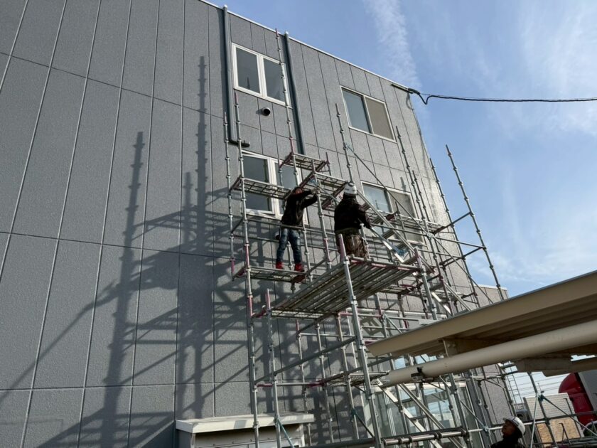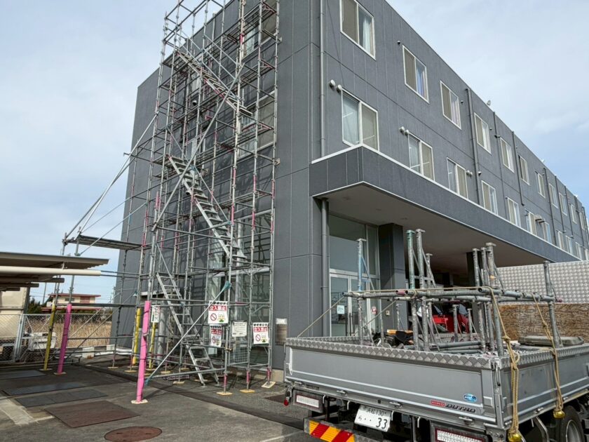 時折、突風が吹く事がある為、本足場でしっかりと組ませていただきました。