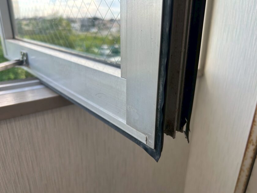 ここは日当たりも良く立地条件的に強風が建物に当たる為、窓ガラスのゴムパッキンの劣化や換気フードから風の吹き返しなどが原因かと判断し、今回施工させていただく事となりました。