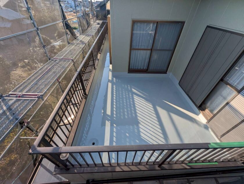 外壁塗装と同時にバルコニーのウレタン防水工事も施工させていただました。