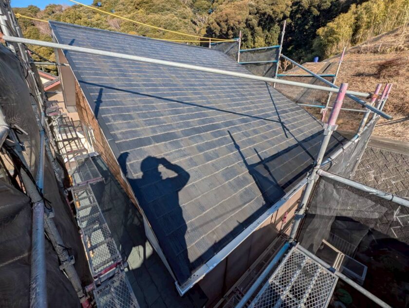 外壁はAGC製の超高耐久水性フッ素樹脂塗料「 水性サンバリアSR上塗りGT防藻 」、屋根は「 ルミステージ弱溶剤GT 」にて施工させて頂きます。完成しましたらまたご紹介させていただきます。前回の工事同様に、一工程一工程、丁寧に施工を進めてまいります。