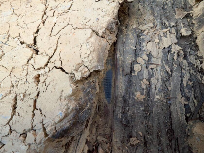 和瓦下には「葺き土」、「杉皮」、「防水シート」、「野地板」が目視にて確認できました。この下地状況次第で屋根工事の内容は大きく変わります。ですので屋根葺き替え工事にとってこの確認はとても大事な手順になります。