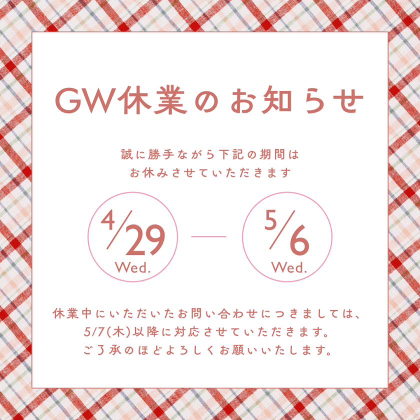 ゴールデンウィーク期間中のお知らせ