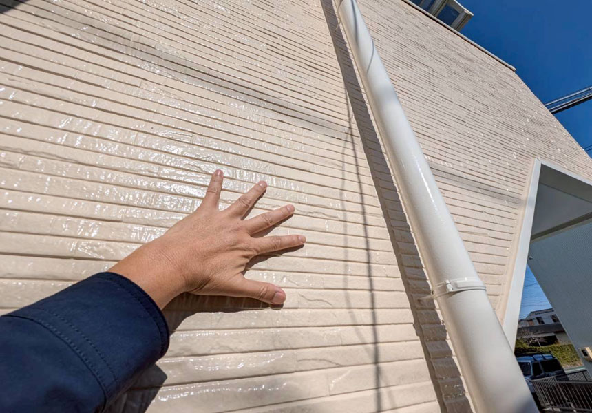 Y様は使用塗料はAGC社製の高耐久水性フッ素樹脂塗料「水性サンバリアSR上塗GT坊藻」にて施工させていただきました。