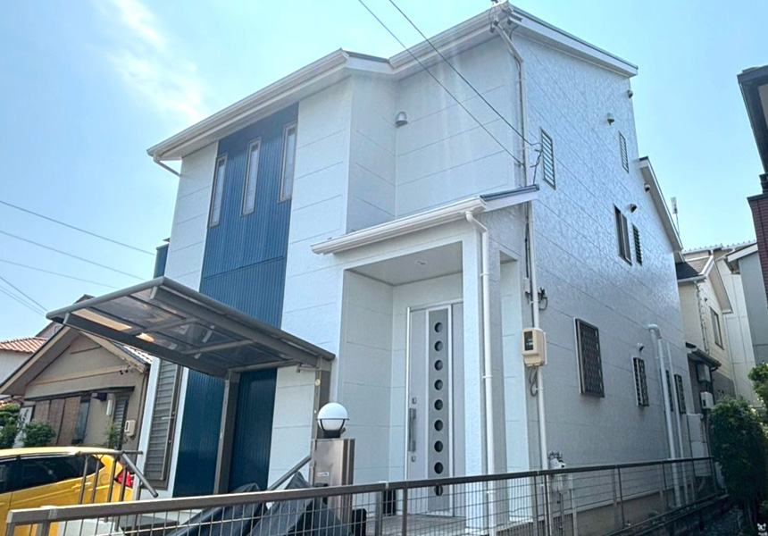 塗料は「日本ペイント」のものを使用しましたので品質等安心していただけると思います。色に関しては既存の色からガラリと雰囲気を変えてホワイトxネイビーのツートンになったのでお洒落で洗練された仕上がりとなりました。