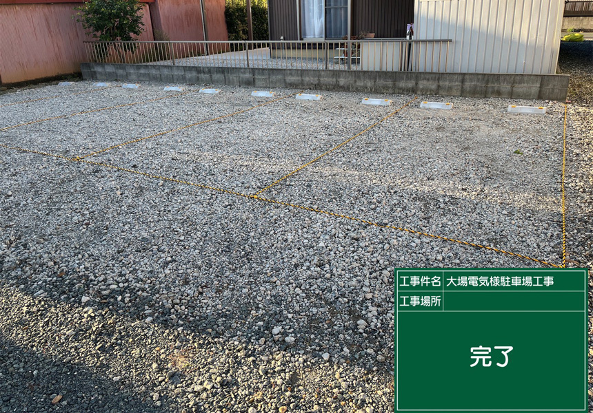 また、駐車場は車止めと区画ロープを設置させていただきました。