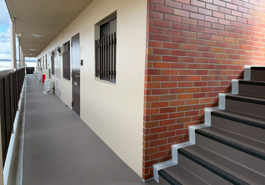また通路パネルを塗装した事で、建物がより一層美しくなりました。
