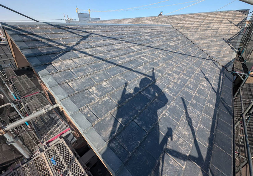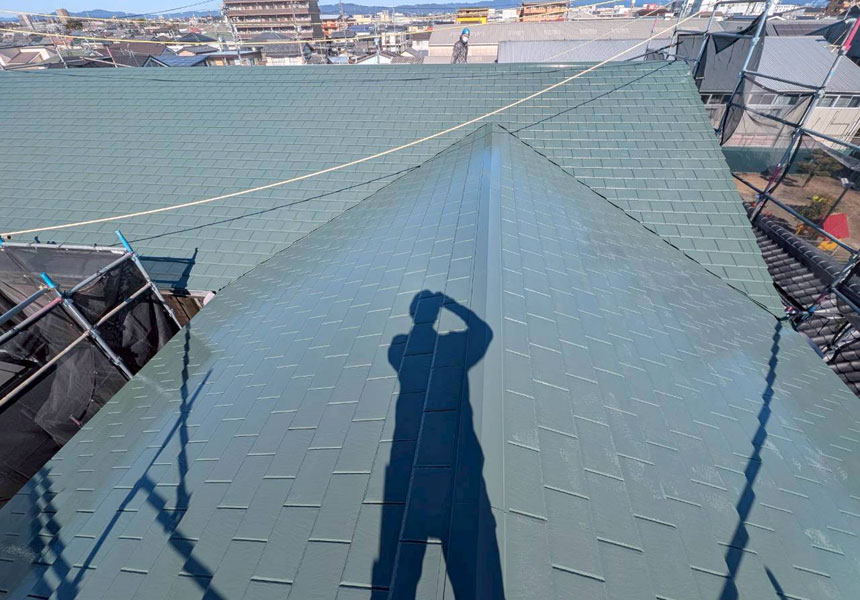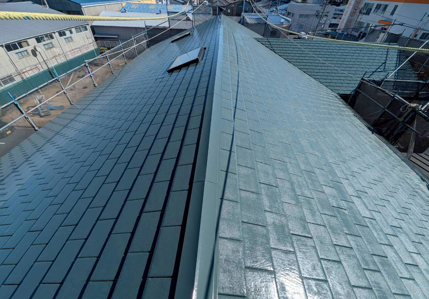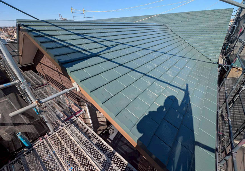屋根塗装は同じく無機塗料の屋根耐候強化色仕様の「タテイルα」にて仕上げました。