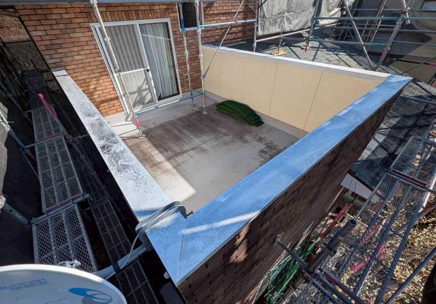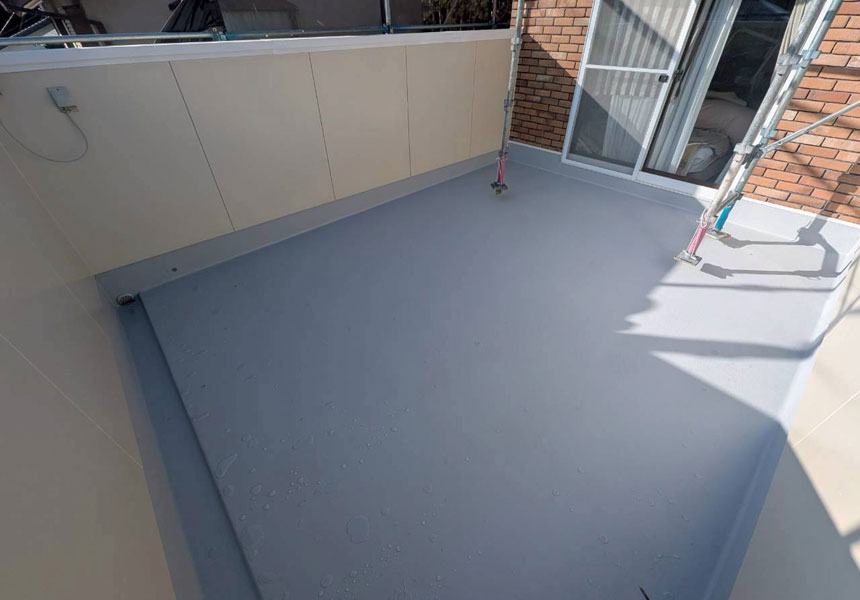 前回の工事では無かったバルコニー床のFRP防水工事も同時に施行させて頂きました。