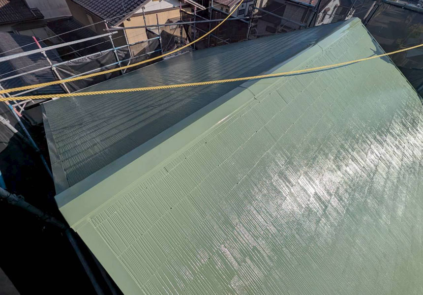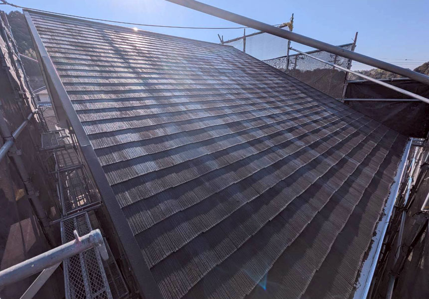 M様の使用塗料はボンフロン社製(旧AGC社製)の高耐久水性フッ素樹脂塗料「水性サンバリアSR上塗GT坊藻」です。