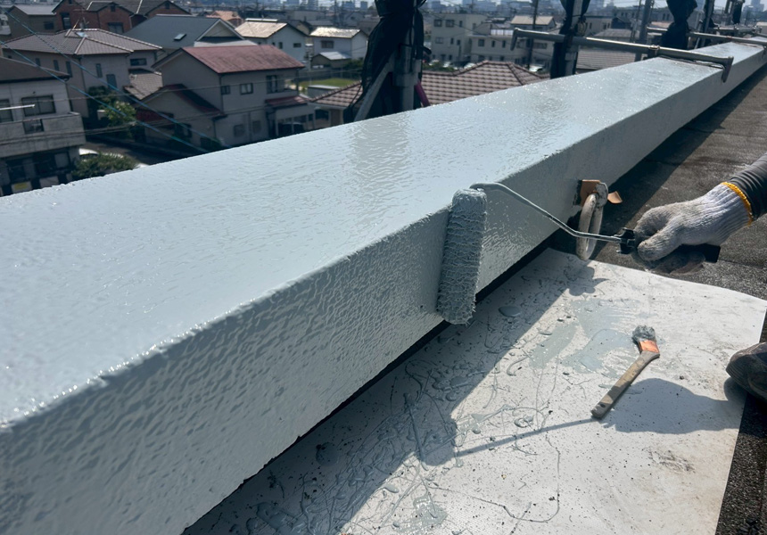 以前西面を施工させていただいており、今回、3階のお部屋で雨漏りが発生しているとの事で屋上防水と東面を塗装させていただきました。