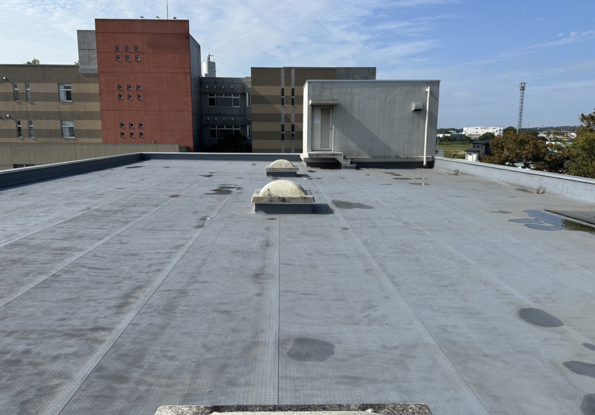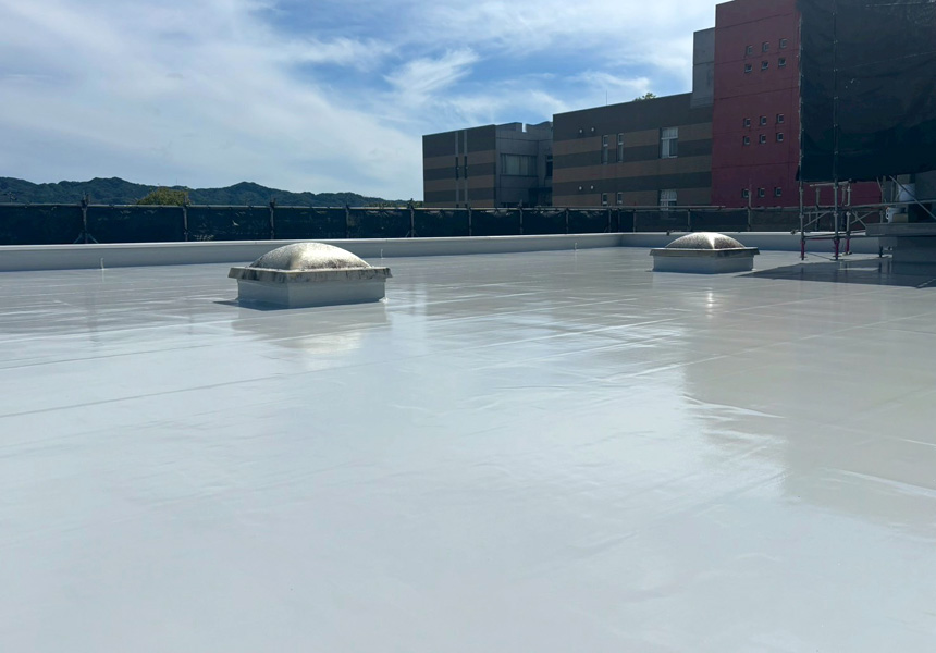 屋上に関してはウレタン塗膜防水を通気緩衝工法にて施工しました。
