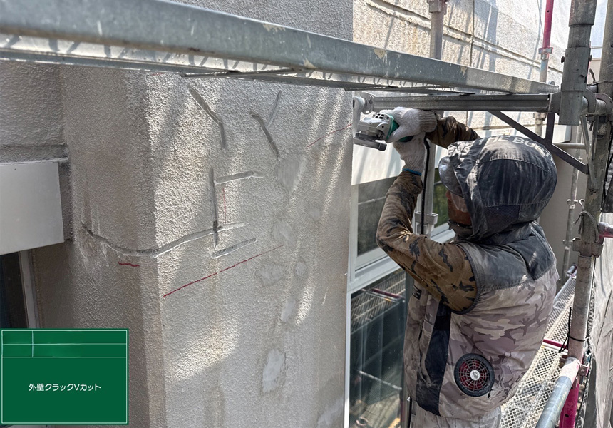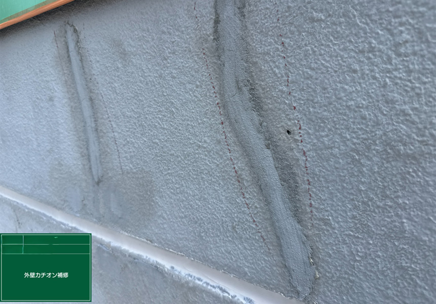 外壁には伸縮性があり、遮熱・断熱性の高い「キルコ」を使用しました。下準備としてクラックの補修、旧塗膜の膨れケレンなど丁寧に作業してキルコの性能を最大限生かせるようムラ無く塗装しました。